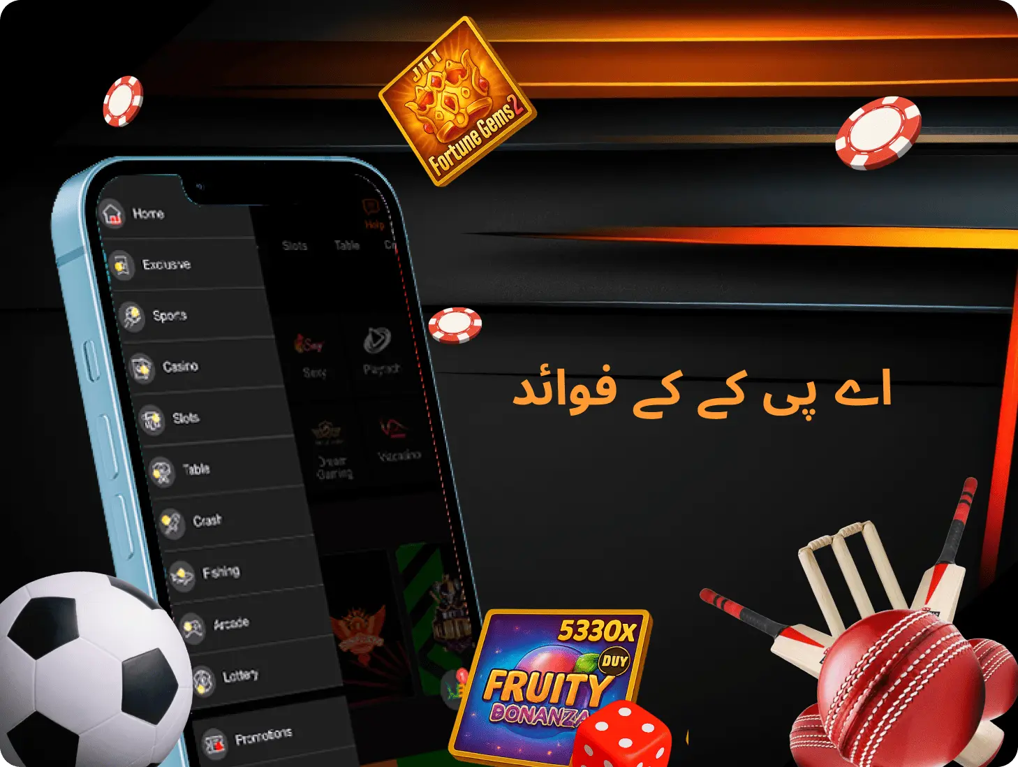 گیمنگ پورٹل اپنی موبائل ایپلیکیشن میں اسپورٹس بیٹنگ کے بہترین مواقع فراہم کرتا ہے۔ ہمارے صارفین فٹ بال، باسکٹ بال، ٹینس اور یقیناً کرکٹ سمیت مختلف کھیلوں پر شرط لگا سکتے ہیں۔